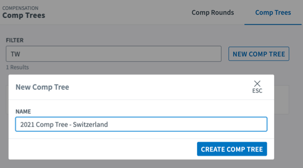 Compensation trees constitute the structure of actual compensation elements available for a given compensation round. They are composed of the following items: