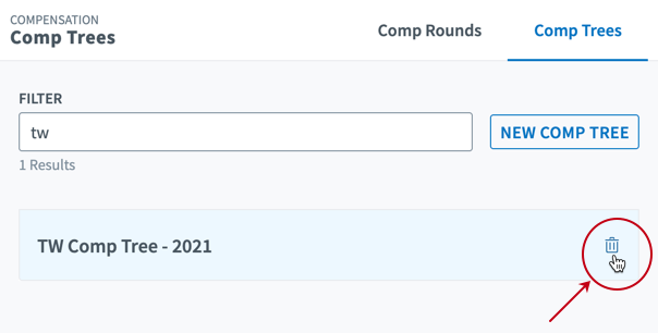 Locate, in the list of comp trees, the tree that you want to delete (see Searching for a comp tree).
