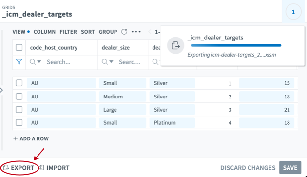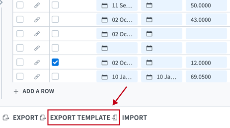 Click Export Template at the bottom of the grid, as illustrated in the following figure: