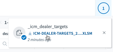 Click Export. The download process is started. When the download is in progress, a download box is displayed in the upper right corner of the application and you can continue working, as illustrated in the following figure: