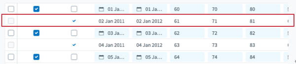 Select one or several rows of the data grid by checking the boxes located at the left of each row. A banner indicating the number of selected rows is displayed above the grid, as illustrated in the following figure: