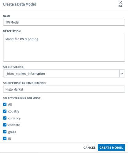 Click Create Model, in the lower-right corner of the window. The data model is created in the system.