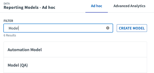 This section details the management of ad hoc data models in the Web Application. The available actions depend on the permissions applied to your profile.