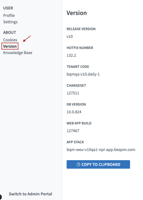 Click Version in the menu. The version information page of the application is opened, as illustrated in the following figure: