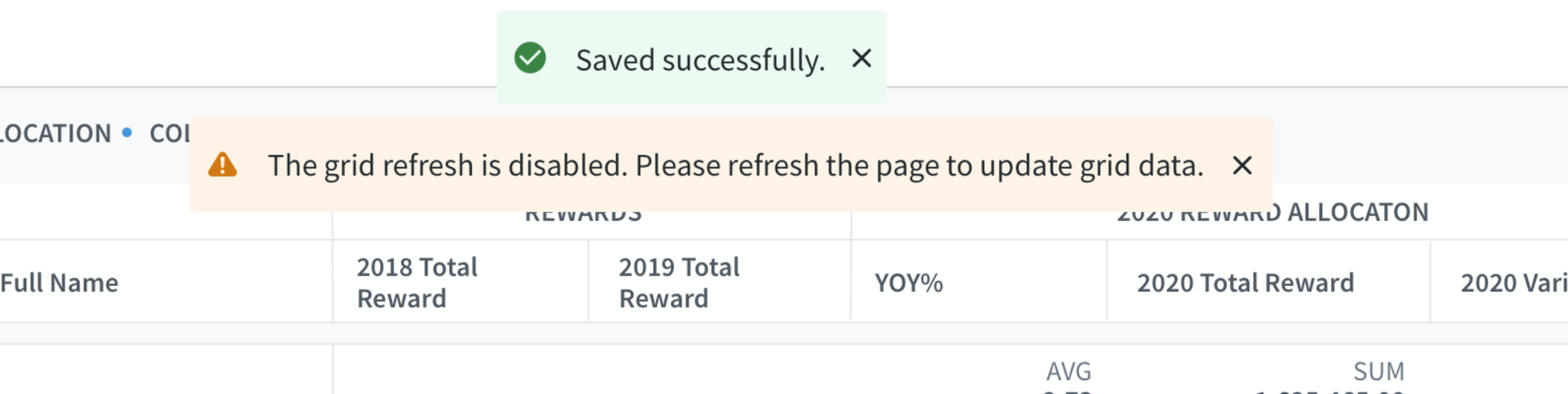 After these methods have been successfully executed, when a user click on the Save Without Refresh button, the UI will return a validation as well as a warning message: