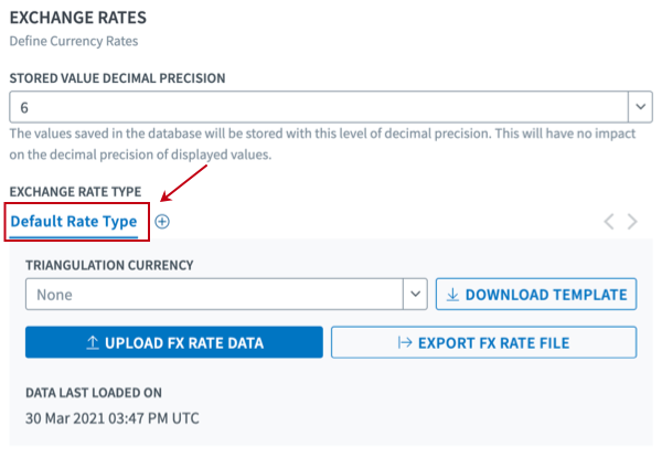 Click Upload FX Rate Data. The new rates are imported in the system.