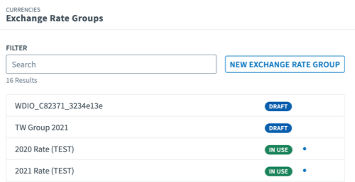 In the "Exchange Rate Groups" page, an exchange rate group can have three different statuses, depending on their progression and readiness: