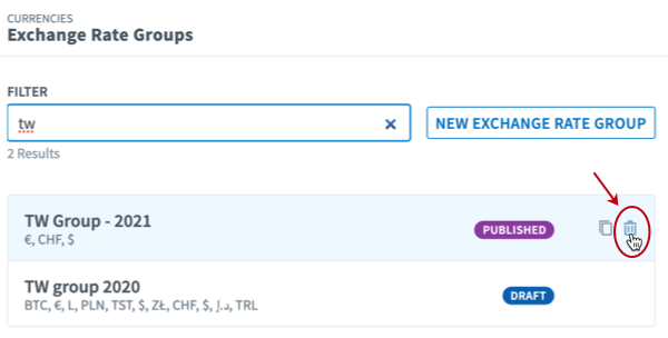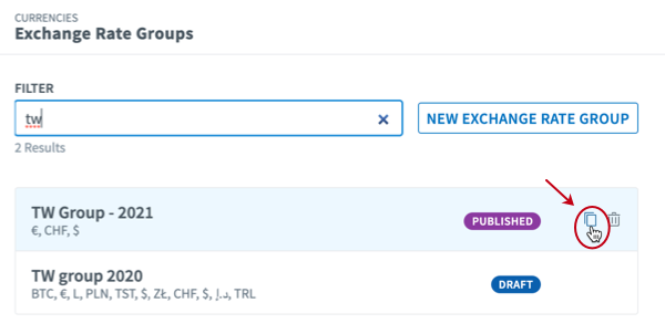 Open the "Exchange Rate Groups" page (see Accessing the exchange rate group management page).