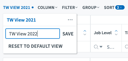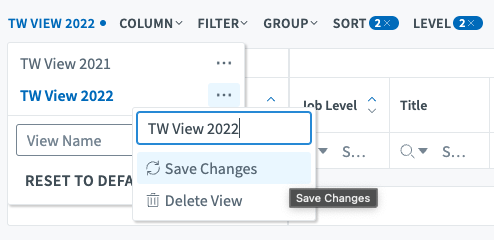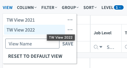 When ad hoc customizations have been done, but not saved yet, a blue bullet is displayed next to the View button, as illustrated in the following figure: