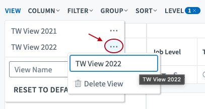 In the contextual menu that is displayed, locate the view that you want to rename.
