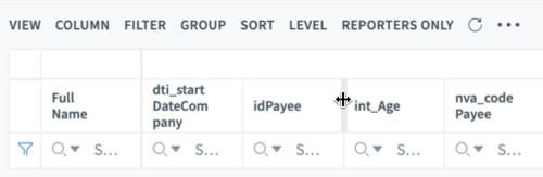 Click the border, and then drag-and-drop the cursor until you obtain the desired width. The column is resized immediately.