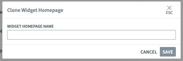 Enter a name for the copied widget homepage and click Save. The widget homepage with the same properties is created in the list.