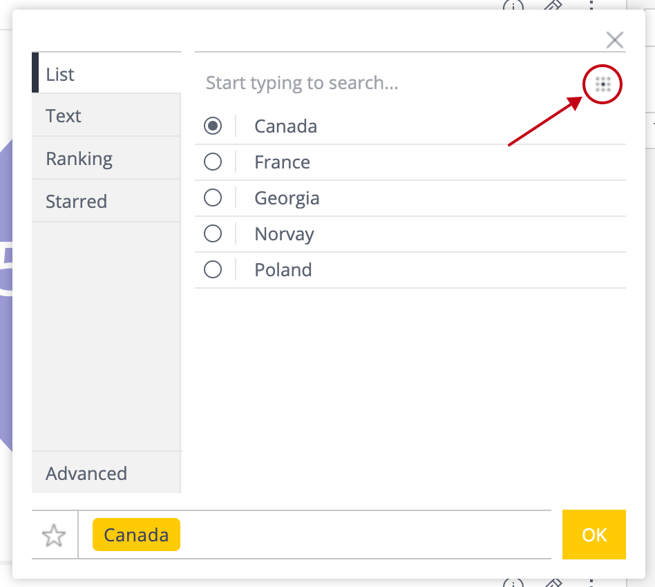 Click the icon located in the upper right corner of the contextual window to toggle to single selection, as illustrated in the following figure: