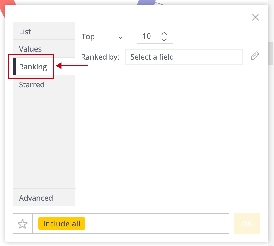Ranking filter tab