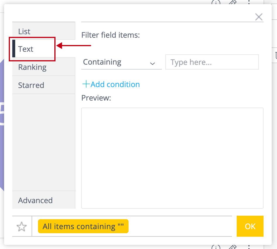 Text filter tab