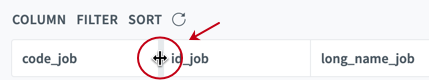 Click the border, and the drag-and-drop the cursor until you obtain the desired width for the column. The column is resized immediately.