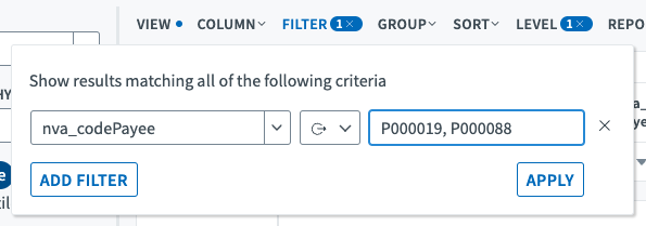 Click Apply. The filter is applied to the grid and an indicator badge is applied in the grid toolbar.