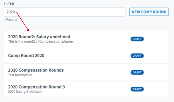 To search for an existing comp round in the list of existing comp rounds, proceed as follows: