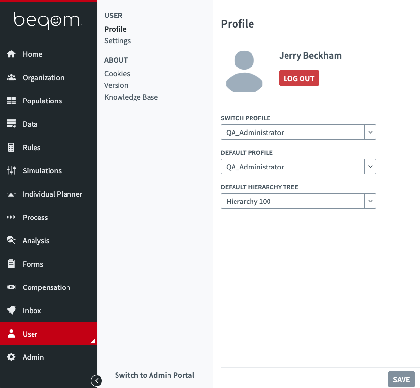 The "User" component enables you to configure your personal preference regarding your individual use of the v10 application.
