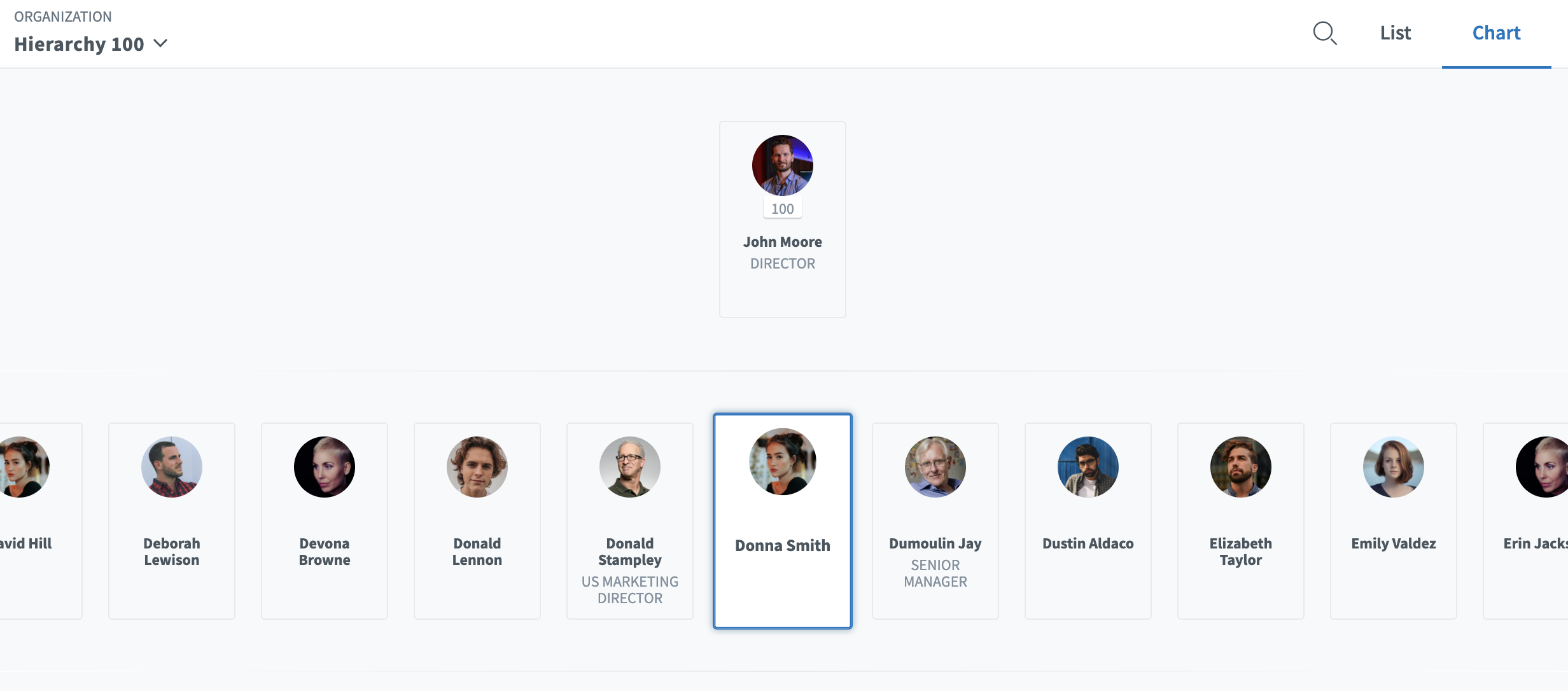 For organizations containing up to 1000 nodes, the Chart view is available.