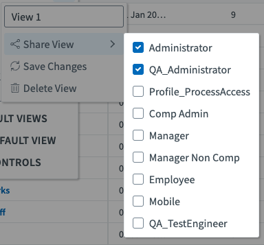 Select one or several profiles to share the view with, as shown in the figure below: