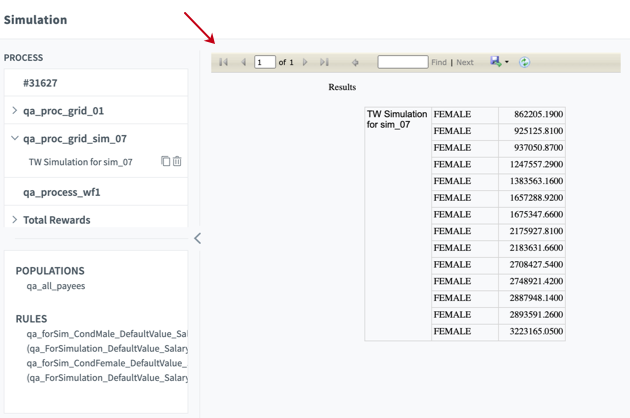 When you open a simulation scenario, you can view the report of the simulation directly from the interface. The report displayed can be an SSRS report, an ad hoc report or an Advanced Analytics report, depending on the configuration of the simulation scenarios.